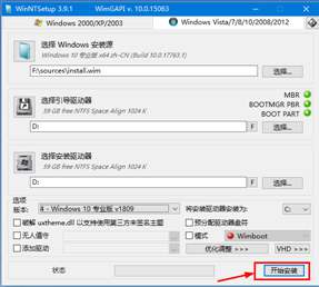将驱动器设置好,选择好版本 专业版 点击开始安装