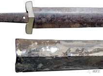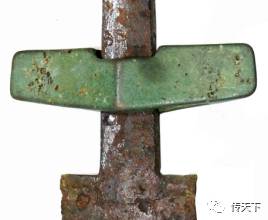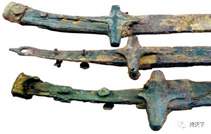 图一(此短剑剑身与鞘均为青铜材质,剑身没有剑格,因为没有剑格的阻挡,插入鞘内的剑尖直接触及鞘底,这样的结构无论对剑身还是剑鞘,都有损伤)