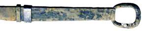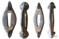 图八(辽金时期的刀格与早期的剑格相似,楔形的茎孔说明这是刀上使用的配件。中原地区的刀剑装具在宋代已经发生了变化,但由于辽代受唐文化的影响较重,经济文化又相对落后,所以,唐代刀剑装具的一些特点在辽代刀剑上得以保留,这些特征也影响了后来取代辽的金代的刀剑)