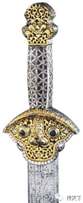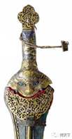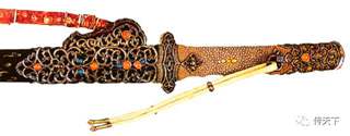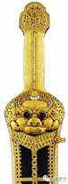 唐宋时期,剑的造型逐渐摆脱了青铜剑的影子,剑装的样式也逐渐固定下来,从宋代《武经总要》书中所绘剑图来看,宋剑已与后世明清时期的剑差别不大(图十七)。由于元代是个短命的王朝,存世兵器极少,元剑的形制很难界定,现在能见到接近元剑原貌的实物要数内蒙古博物馆所藏的蒙古贵族用剑(图十八)、英国利兹皇家军械局博物馆收藏的明永乐皇帝赠给西藏活佛的剑(图十九)及纽约大都会博物馆所藏的中国十四至十五世纪藏区贵族用剑(图二十),这三只剑剑格制作华丽、纹饰繁缛,与中原地区剑装的样式差别较大,其装饰风格都呈现出浓厚的西域特征。