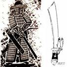 不过,随着环首刀格斗动作的增多,在隋唐时期,如青铜剑剑格的发展情况一样,刀镡也开始出现在环首刀身上,如日本奈良正仓院收藏的公元8世纪唐大刀在刀柄与刀刃处就安装了刀镡(图七)。这一时期的刀镡形制大多与青铜剑剑格相似,仍未脱离当时剑装的影子,也可称为刀格,这种样式的刀格在辽金时期的刀装上仍能看到(图八),它与1995年河北曲阳五代时期后梁大将王处之墓出土的彩绘浮雕武士石雕所持剑的剑格相同(图九)。